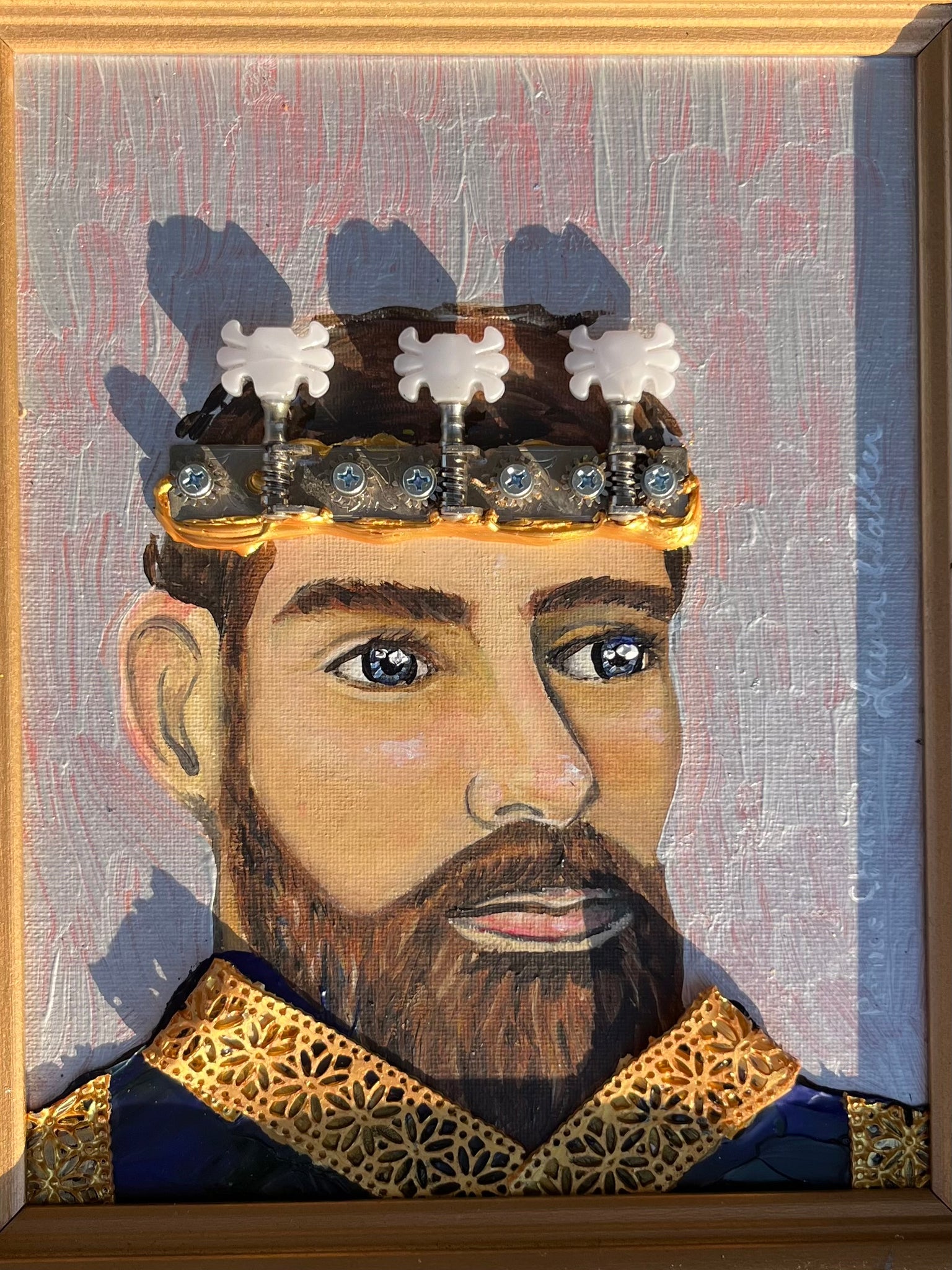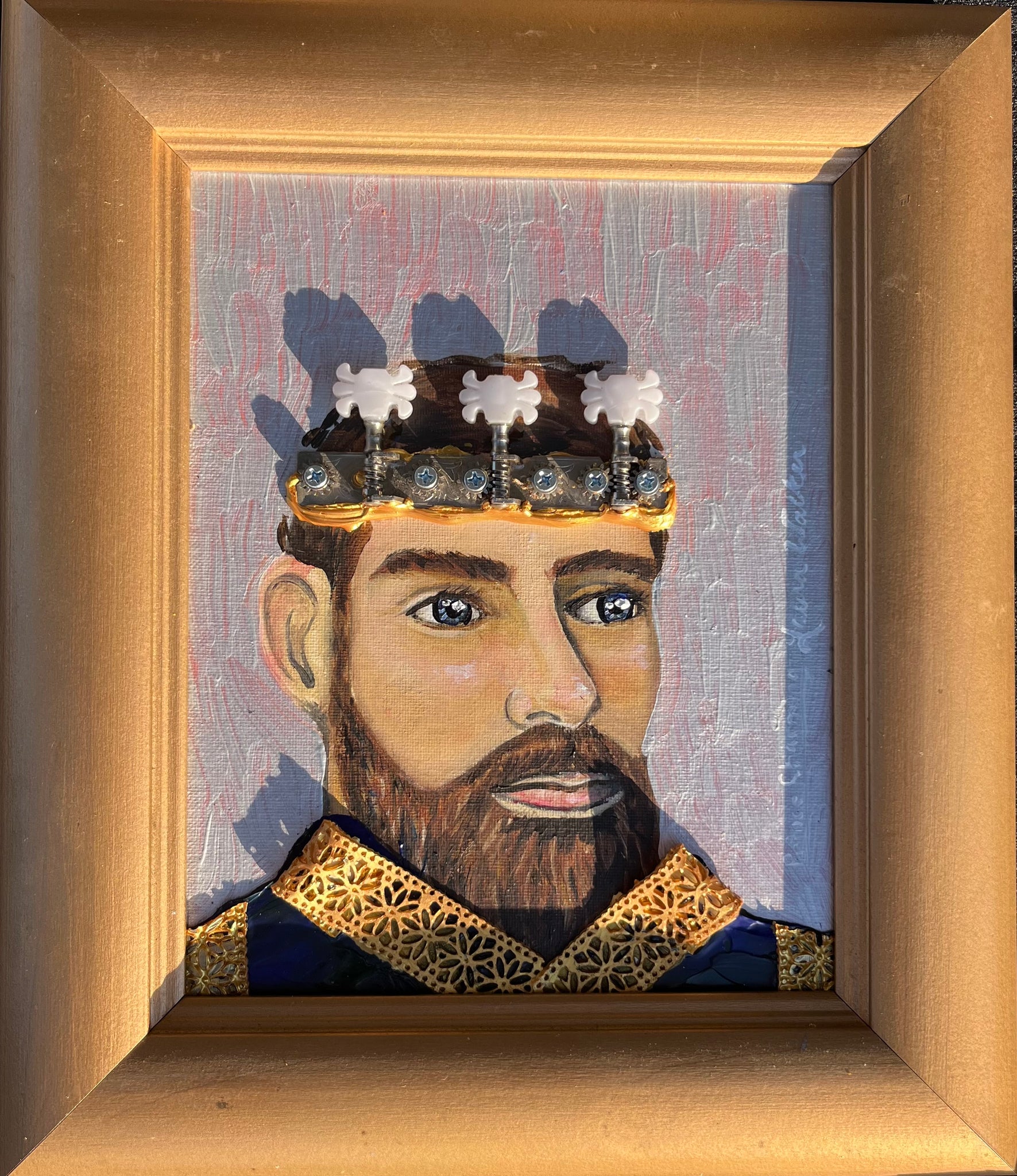 I found an amateur portrait of a man and decided he could be Prince Charming. And I happened to have a chonky gold frame that was perfect for him. I love the serendipity of using found objects!