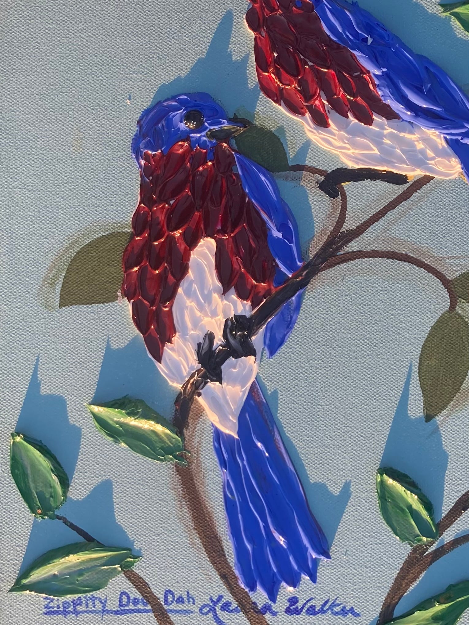Zippity Doo DahAcrylicsOn a rescued amateur paintingOn 16x12 stretched canvasShipping is included in the listed price. It will be insured for its journey, shipped in a sturdy cardboard box.